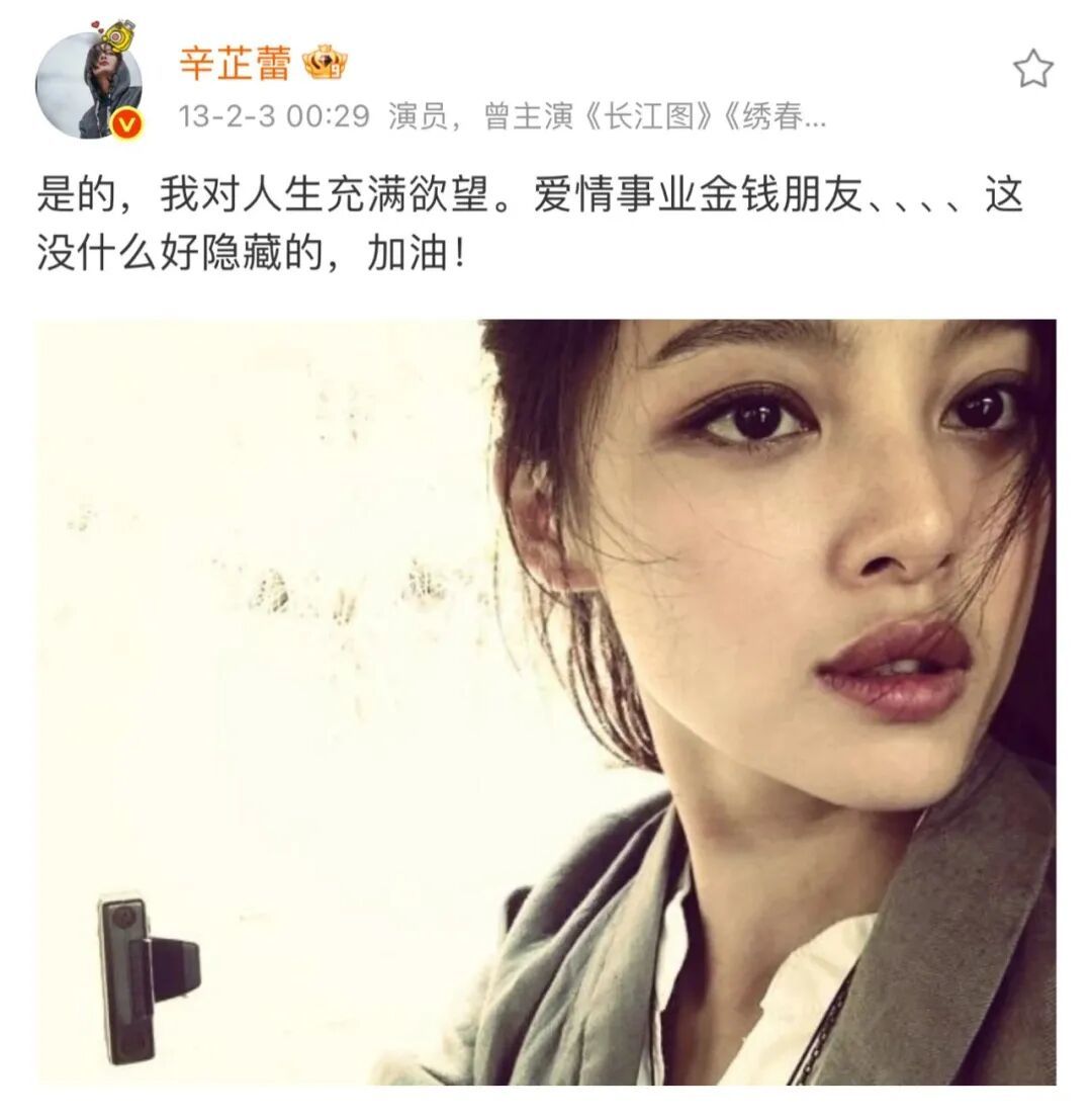 几年前被人们记住“把野心和欲望写在脸上”的辛芷蕾,曾经在《星空演讲》上说过,自己对事业的野心和欲望,是希望成为一个有选择权的演员。