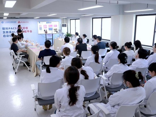 8 月 28 日,上海和平眼科医院成功举办了鹰瞳科技眼科PACS系统验收及眼底AI人工智能平台启动仪式。鹰瞳Airdoc副总裁赵雷一行受邀出席,与院方医护人员共同见证这一重要时刻,上海和平眼科医院在眼科智能化诊疗领域开启新的篇章。