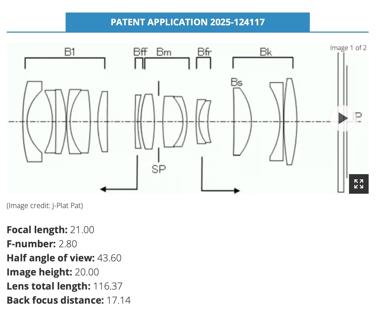 佳能新镜专利(专利号:2025-124117)