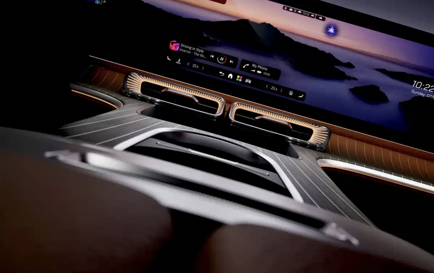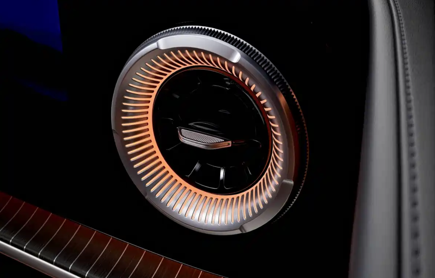 内饰氛围感非常赞,首先映入眼帘的就是全新无缝MBUX超级大屏,几乎贯穿整个中控台,尺寸达到39.1英寸,屏幕内首次采用矩阵背光技术,据说内置超1000颗独立LED灯珠。同时,在空调出风口也加入了氛围灯,在调节时会发生变色,不仅提升视觉效果,还能知道、调节生效。