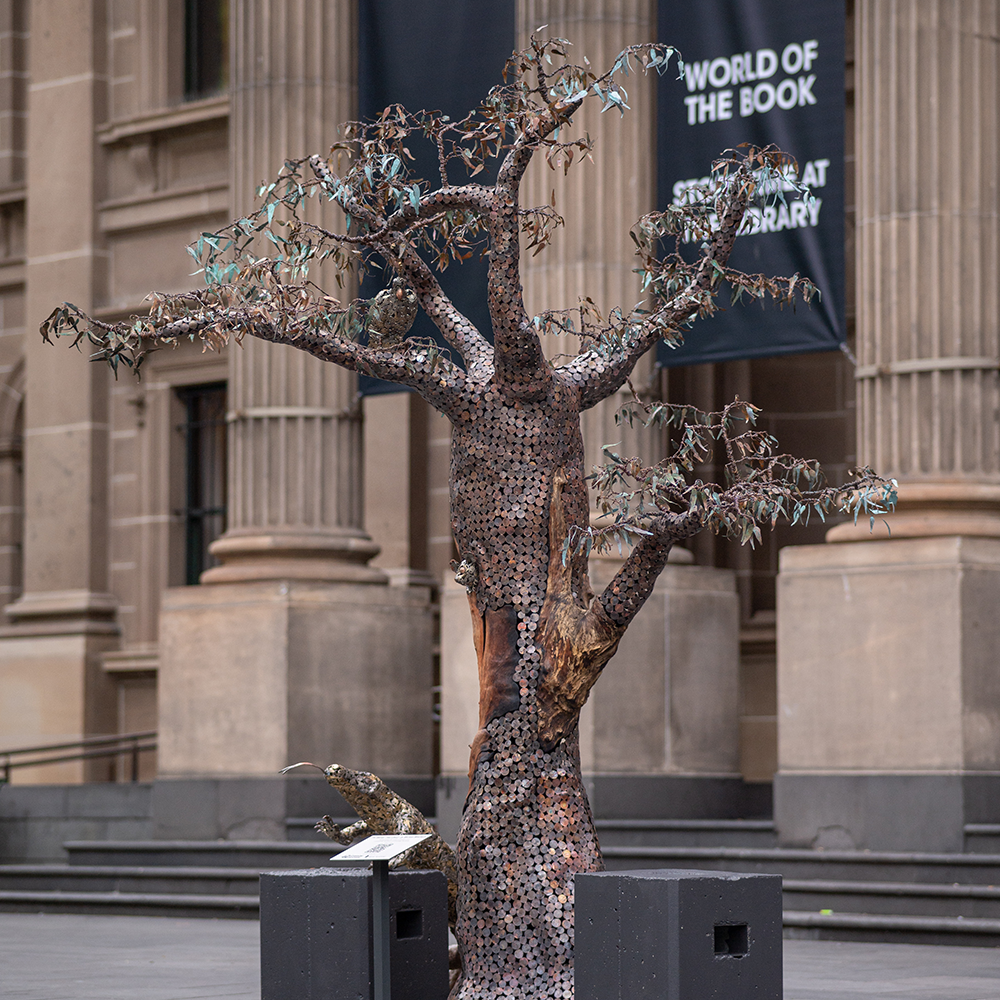 来自澳大利亚维多利亚州的艺术家迈克尔·莫克尔克,就用真实的硬币,打造了一棵传说中摇钱树,或许只要用力摇一下,它就会像传说中的摇钱树一样,掉落下真实可用的钱。