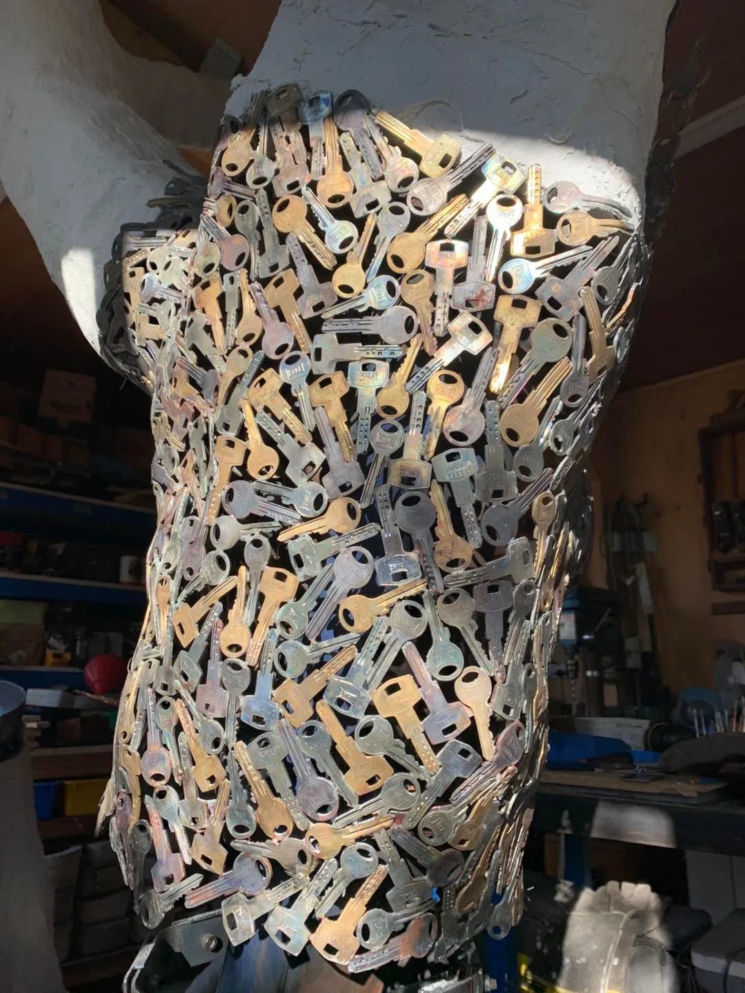 据小绛了解,迈克尔·莫克尔克从事金属雕塑创作已有近40年时间,他十分擅长使用金属钥匙和面值不同的硬币等作为材料。固定的创作材料,打造而成的雕塑作品也相对固定,而这种固定对于这位艺术家来说并不是限制,而是一个明显的标签。