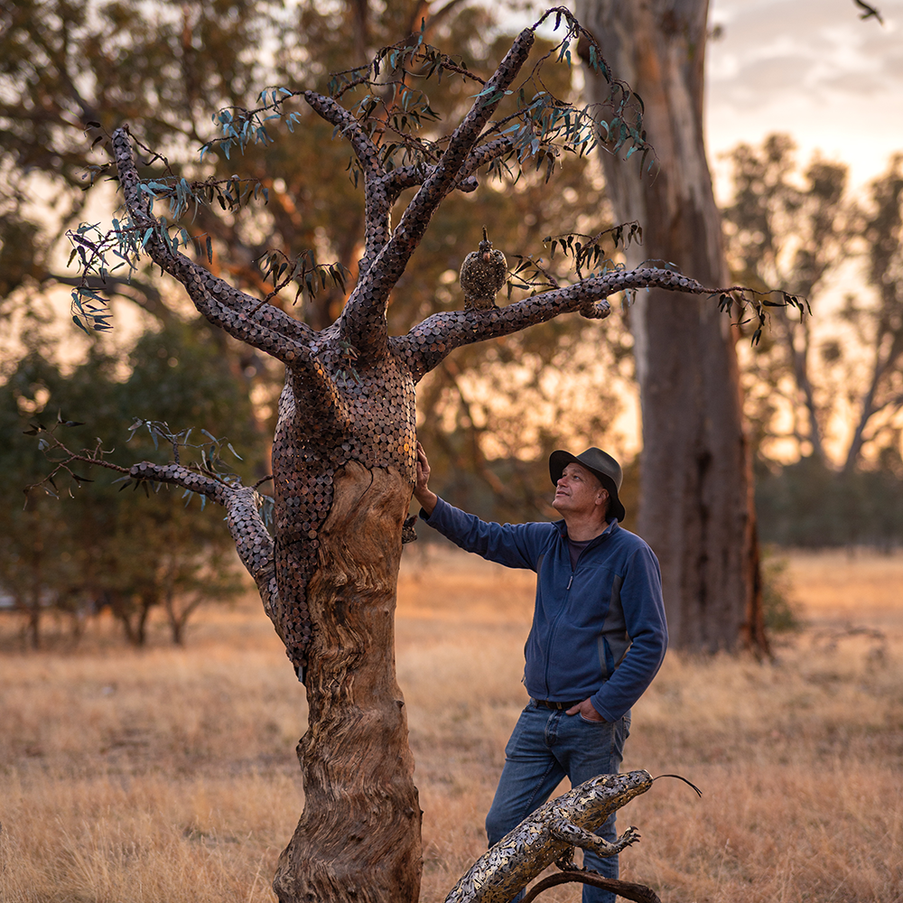 我们在前文中提到的,由硬币组成的摇钱树,就是迈克尔·莫克尔克创作的一件极具个人风格的焊接雕塑,整个雕塑高3.5米,由40根树枝组成,通体耗费的硬度重量大概在600斤。艺术家直言,创作这件雕塑的目的,是为了激励人们保护大自然。