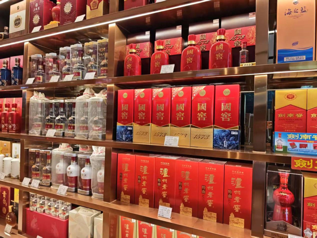 广州某线下商超里的白酒货架陈列 《消费者报道》记者摄