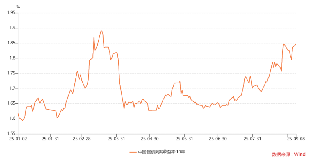 2025年以来,10年期国债收益率呈现了先上后下再上的区间震荡走势,7月份以来债市震荡走弱,进入8月份后更出现明显下跌。(Wind,2025.1.1-2025.9.8)