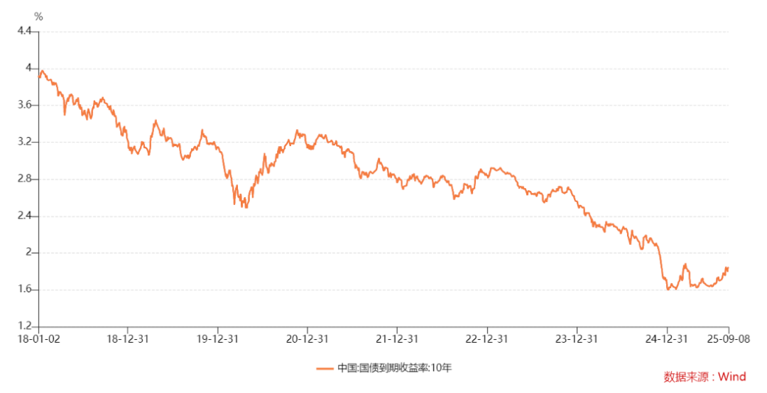 2018年初至今,10年期国债到期收益率从接近4.0%一路震荡下行至1.60%附近,下行幅度近240BPs。尽管期间也出现过2020年5-7月和2022年11-12月这样的调整,但整体并未改变债券牛市格局。(Wind,2018.1.1-2025.9.8)