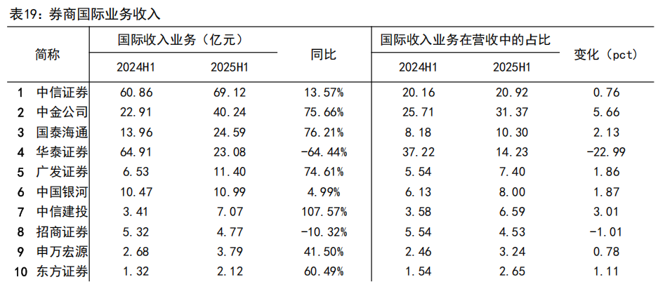 头部券商综合实力强劲,国际业务处于领先地位。据Wind数据显示,中信证券、中金公司、国泰海通、华泰证券等头部券商在国际业务中处于行业领先地位;中小券商国际业务起步较晚,体量同头部券商相比,还存在不小的差距,但中小券商的国际业务也在快速增长中。