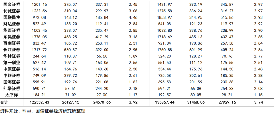 财务杠杆率环比略有下降。从财务杠杆率[ 财务杠杆率=(总资产-代理买卖证券款)/净资产]来看,2025年上半年,42家上市券商的财务杠杆率为3.74倍,较2024年末减少0.1pct,主因系上半年券商净资产提升至27,929.16亿元,增长幅度达10.78%。