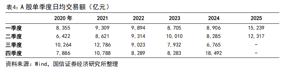 2025年上半年,42家上市券商实现经纪业务收入634.54亿元,较去年同期+43.98%,主因系上半年市场交投活跃。从成交量来看,2025上半年,A股日均交易额为12,317亿元,较去年同期+60%;股基交易额达188.78万亿(单边),较去年同期+61%,市场活跃度提升。