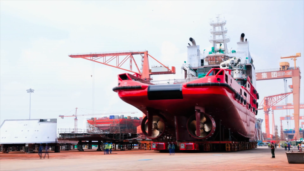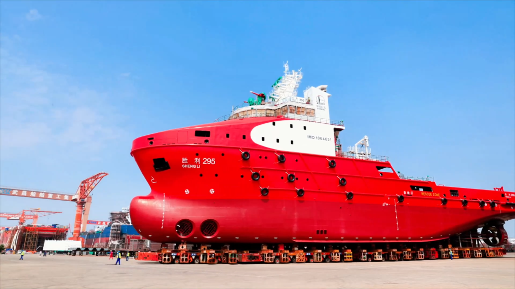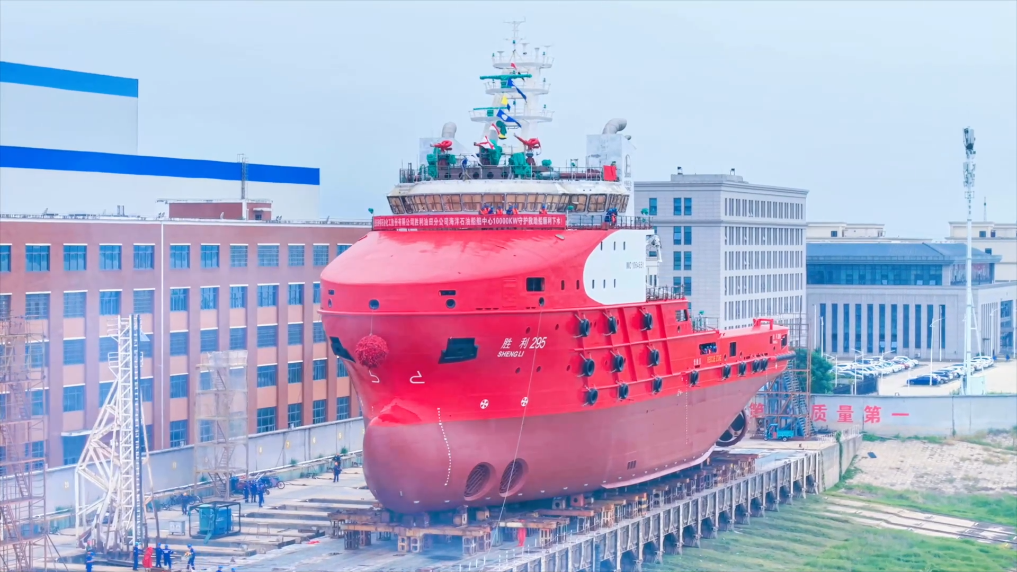 近日,中国石化胜利油田最大马力工作船——胜利295船顺利下水。
