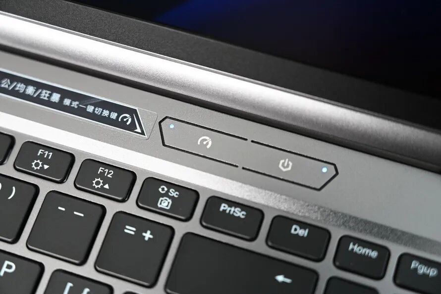 C面布局依旧熟悉,右上角有独立的开机键和模式切换键,无需担心误触。按下模式切换键,可以在办公、均衡和狂暴模式之间快速切换。