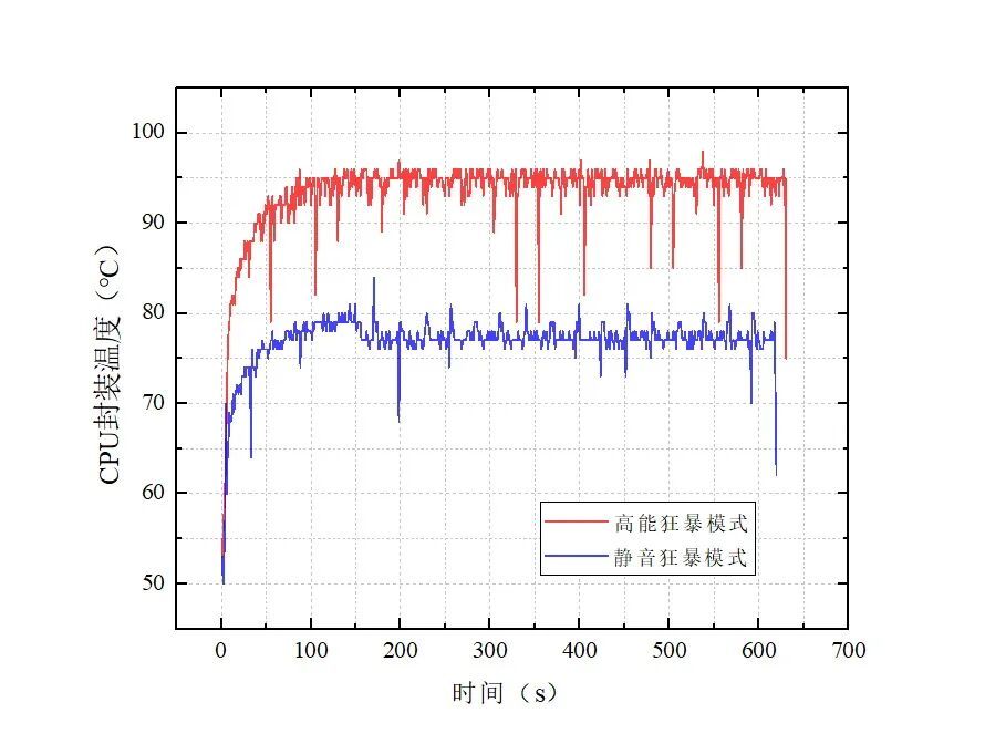 通过测试结果可见,高能和静音模式下,得分仅有个位数差距,帧数表现已经到了小数点后两位,完全可以算作误差。