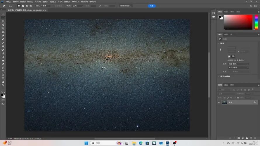 在PS中打开体积约24GB的星空图大型文档,加载总耗时约24.7秒。