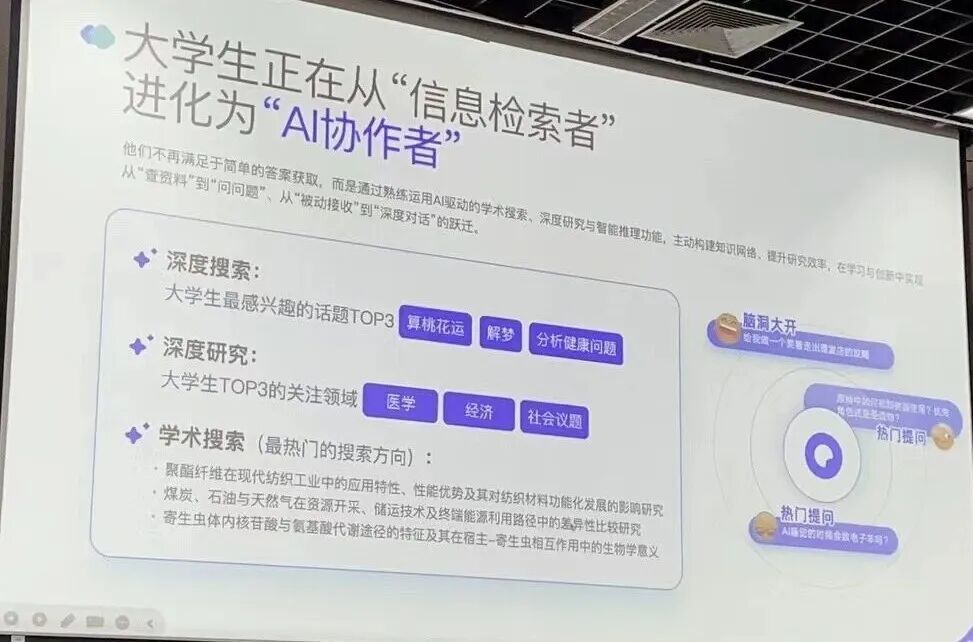 数据显示,每10个大学生中就有7人在使用夸克,并且不仅北上广,在高考大省山河四省,大学生们也都在高频使用AI。
