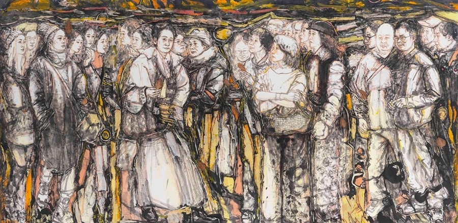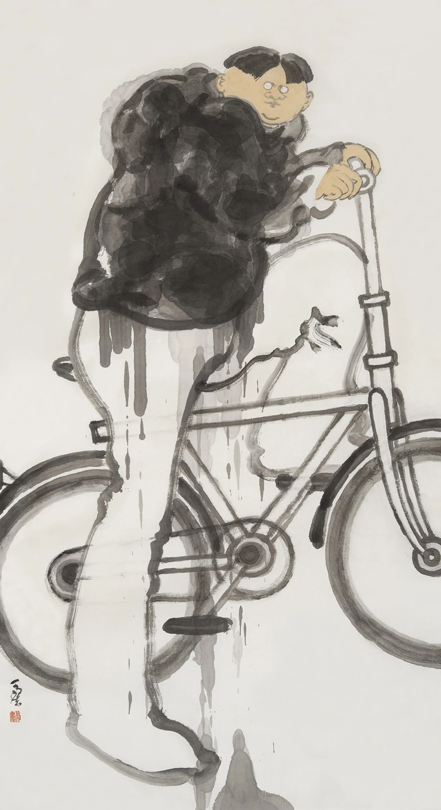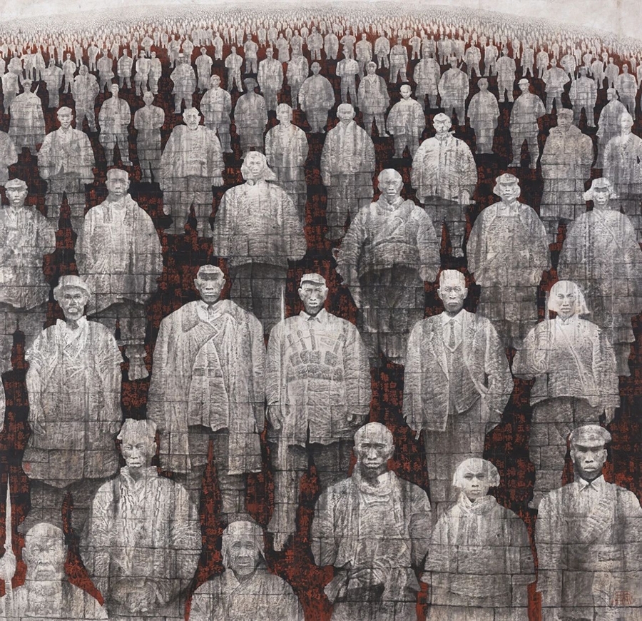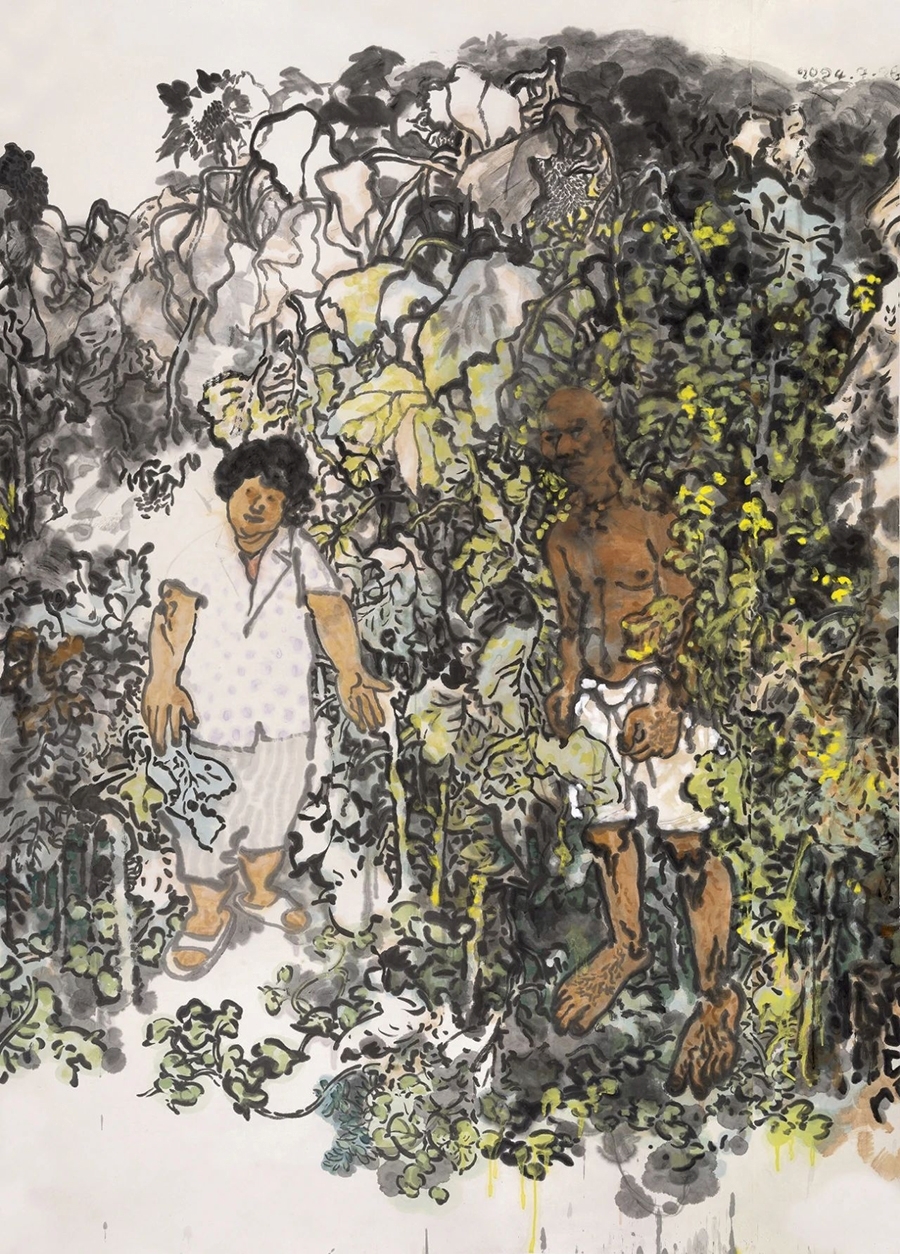 唐勇力于沉雄苍茫中构筑历史图景,其人物如从岁月深处行来,线条如古树虬根,墨色厚重如大地凝铸,那宏大叙事背后,是历史沧桑与生命坚韧的深长回响。田黎明则别开生面,将光色揉进水墨,他笔下的光斑如灵性跃动,人物轮廓于虚淡朦胧中若隐若现,流动的墨韵中照见生命本真,透出一种恬淡而神性的澄明。尉晓榕则执笔行走在文人意趣的幽径上,人物神态灵逸,笔触活泼又内敛,于诙谐与飘逸间自成格局,仿佛将古贤风致化入当代笑谈。张望则凝眸于都市众生,并照见人性温度,在传统程式与数字时代间,笔下呈现出疏离与孤独之态,他以敏锐之眼捕捉现代灵魂的语境,为传统水墨注入了冷峻的思考。刘西洁先生则以更为前卫的探索精神,大胆解构与重构水墨本体,其人物形貌奇崛而内蕴深刻,笔墨间奔涌着实验的锐气与哲学的沉思,为水墨注入了强劲的当代脉搏。