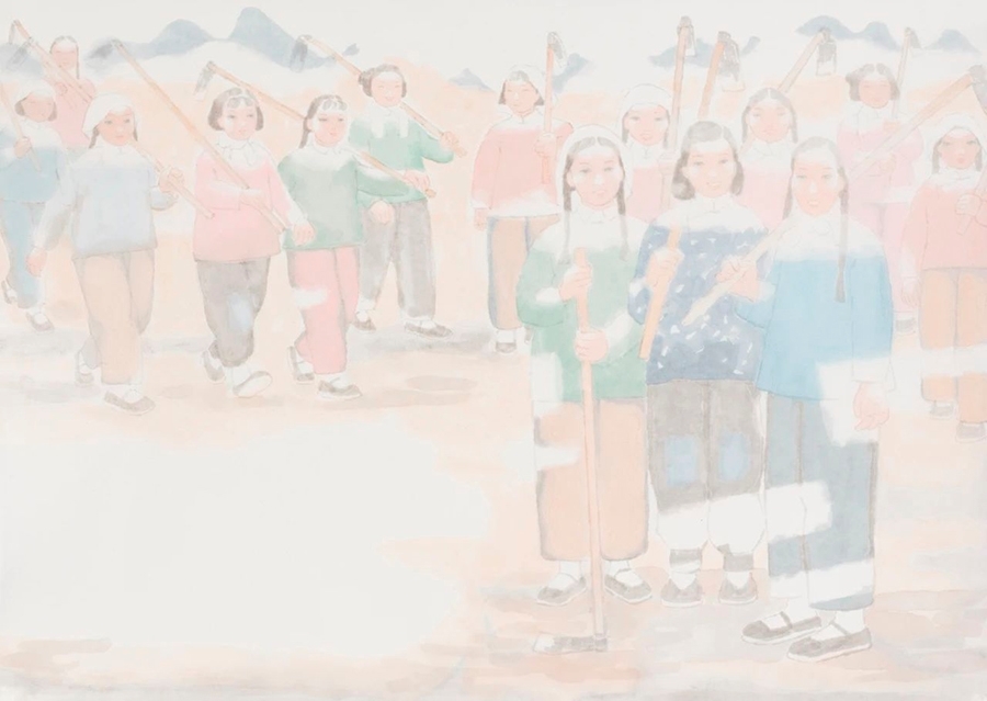 三姐妹 100X58cm 1982年 纸本水墨