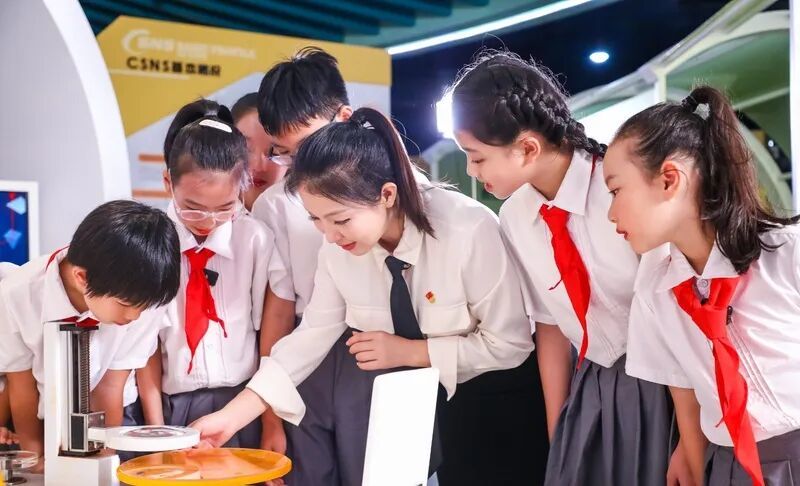 为了让学生近距离感受科技力量,胡嵘苹带孩子们走进中国散裂中子源,听科研人员讲述“国之重器”的研发故事。返程路上,一个女孩坚定地说:“胡老师,我长大后也想像他们一样!”第二天,胡嵘苹收到了一瓶学生自制的防蚊水——这是孩子看到她被蚊子叮咬后,用所学知识付出的真心。这瓶稚拙的防蚊水,不仅是学生关爱他人的体现,更是科技报国种子悄然发芽的见证。