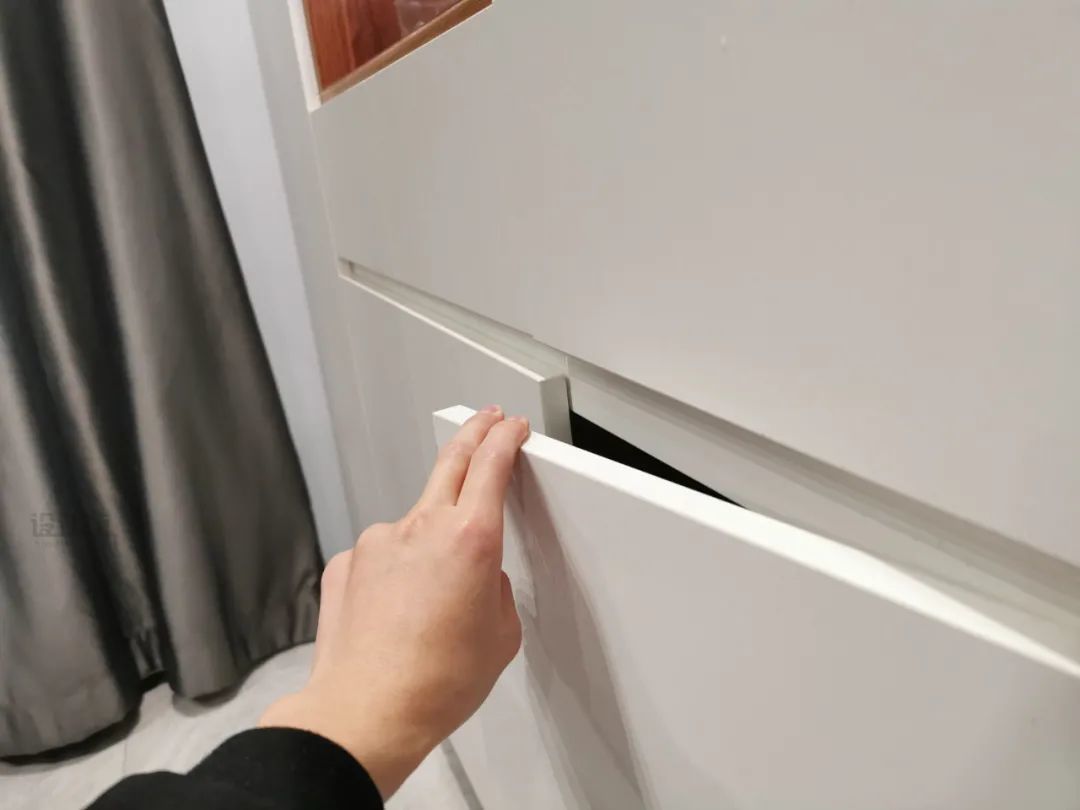 柜体的门不一定要装拉手,可以通过各种方式,比如门板缝隙、隐形拉手等设计方法,实现无拉手的隐形效果,让柜门保持简洁大方的画面感。