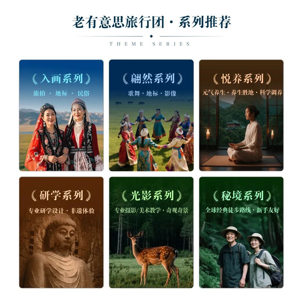 "老有意思旅行团"系列聚焦主题深度体验,涵盖翩然、研学、康养、摄影、非遗、轻户外六大主题。其中,内蒙线融入了专业的草原舞蹈教学和安达乐队互动演出;成都线则结合了都江堰水利工程专家精讲、青城山八段锦研习和川剧变脸体验,实现了文化沉浸与身心愉悦的双重提升。该系列在暑期表现亮眼,尤其是成都研学线路成为最受代际旅行欢迎的产品之一。