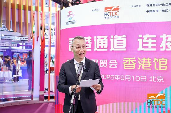 陈嘉贤在致辞中表示,从第一届开始,香港贸发局已经连续12届在服贸会设立“香港馆”,展现香港作为“超级联系人”和“超级增值人”具有“内联外通”的独特优势。今年“香港馆”将以“1+2+3+4+N”为抓手,通过1场“香港馆”开馆仪式、2场对接座谈会交流活动、3场港商走进服贸会活动、4场专题分享以及N场推介等系列活动,搭建京港服务业合作平台,多维度助力企业“出海”。