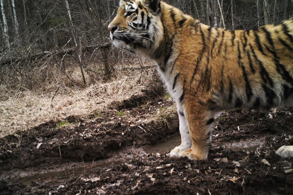 这是红外相机在东北虎豹国家公园龙江森工绥阳片区拍摄的野生东北虎(2023年4月29日摄)。新华社发