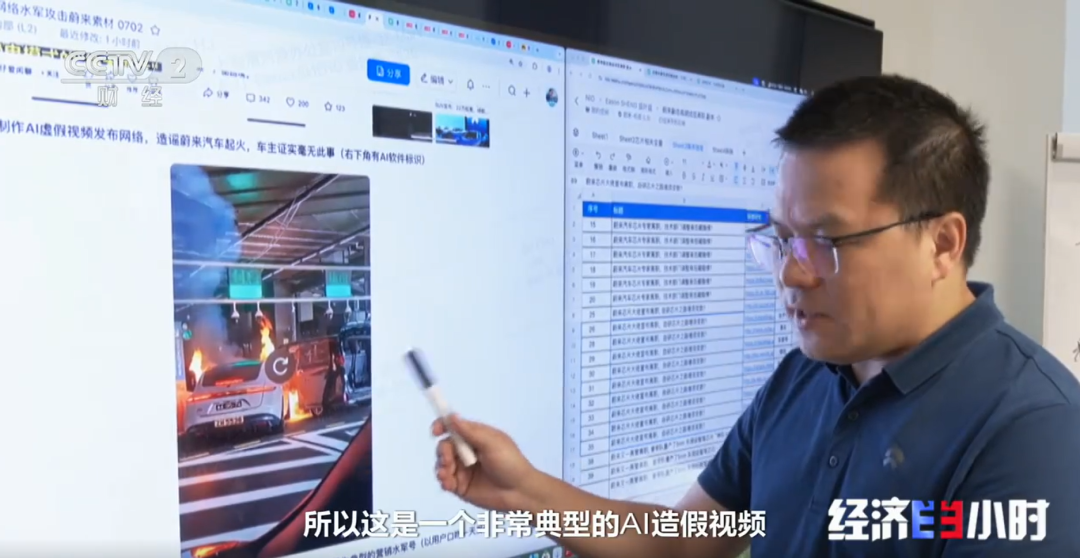 前段时间在网络上广为流传的视频:一辆车在高速公路行驶中发生撞击爆炸起火,而另一辆停在那儿被轻轻撞击就发生自燃。两段视频都指向蔚来汽车,累计点击超过1亿次。但调查发现,两条视频都是假的,第一条是国外的一起交通事故,被人移花接木;第二条假得更彻底,根本就是人工智能合成的。
