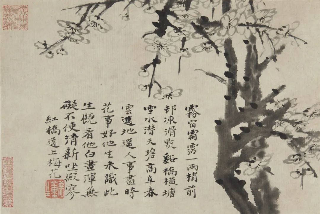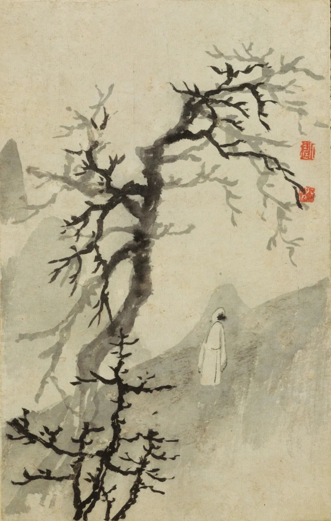 康熙二十四年雪霁,石涛独自策杖,行走天印山、青龙山等处,搜诸岩壑,探胜妙趣横生,不论野店荒村、人家僧舍,穷尽而返。等他回到报恩寺时,已有人守着要他承诺的梅花,可见其笔下梅花非常受时人赏识。