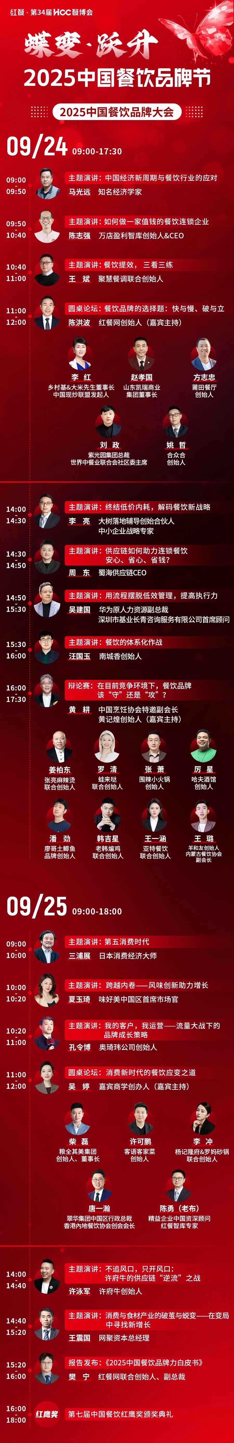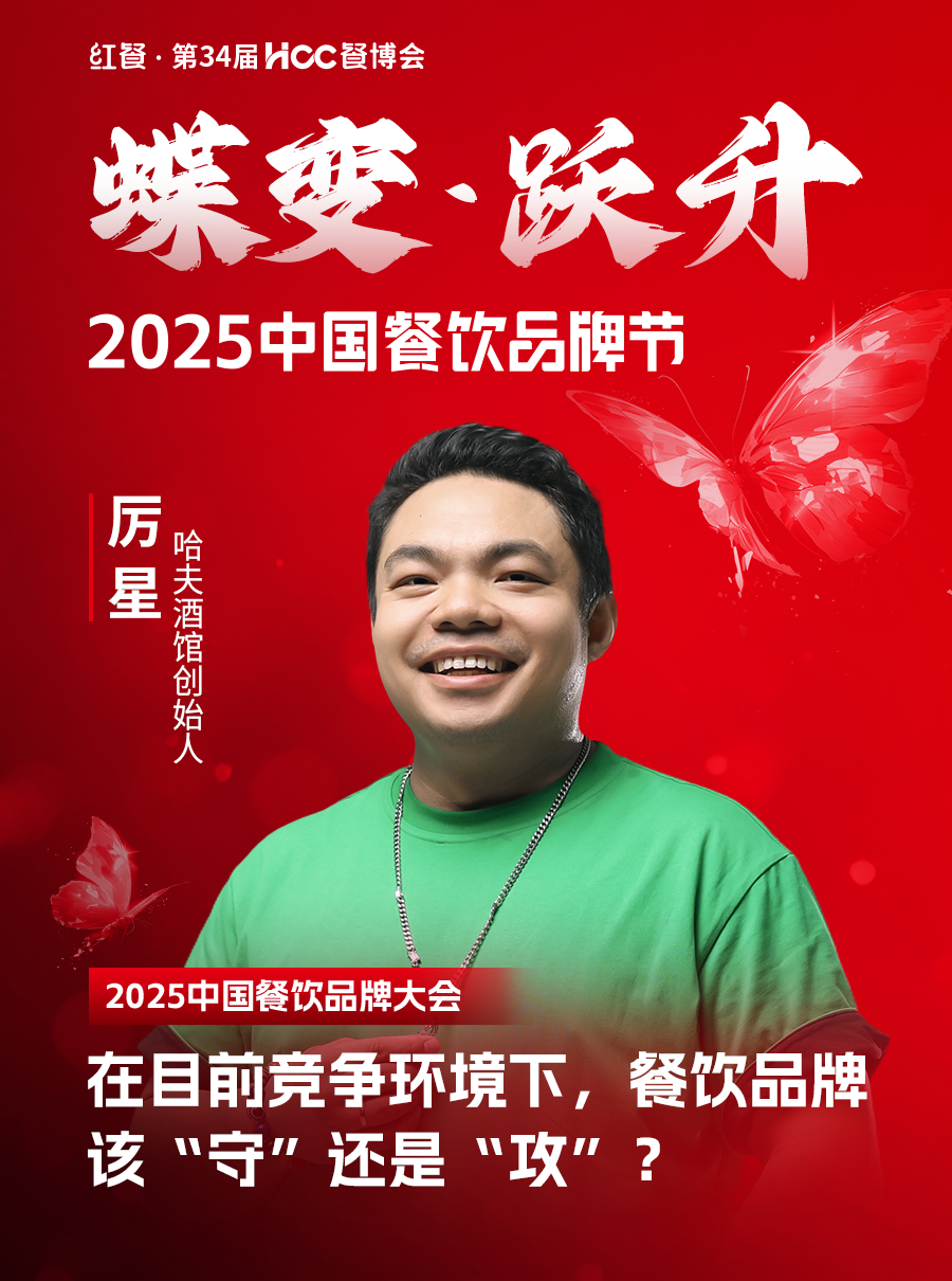 在此背景下,2025中国餐饮品牌节(红餐·第34届HCC餐博会)应运而生。本届品牌节由广州市商务局指导,世界中餐业联合会、红餐网联合主办,以“蝶变·跃升”为主题,将于9月23-25日在广州朗豪酒店&海珠国际会展中心举办。