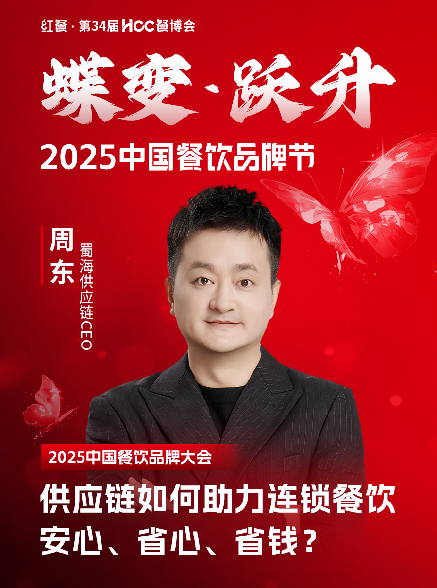 周东,蜀海供应链CEO、餐饮供应链实战派领导者。2008年加入蜀海,历任财务、采购、区域管理、商品等板块负责人及COO等核心岗位,深度穿透餐饮供应链全链条业务,锤炼出供应链全局掌控力。2025年接棒CEO以来,主导温控仓储迭代、冷链运输升级、数字化管理等全托管服务体系落地;创新性提出 “安心、省心、省钱” 服务理念,为餐饮行业破解增长难题,让餐饮上下游安心经营、省心管理、省钱发展。致力于带领蜀海以行业领军者姿态,推动中国餐饮供应链向高效化、智慧化加速迈进,重塑行业发展新格局。