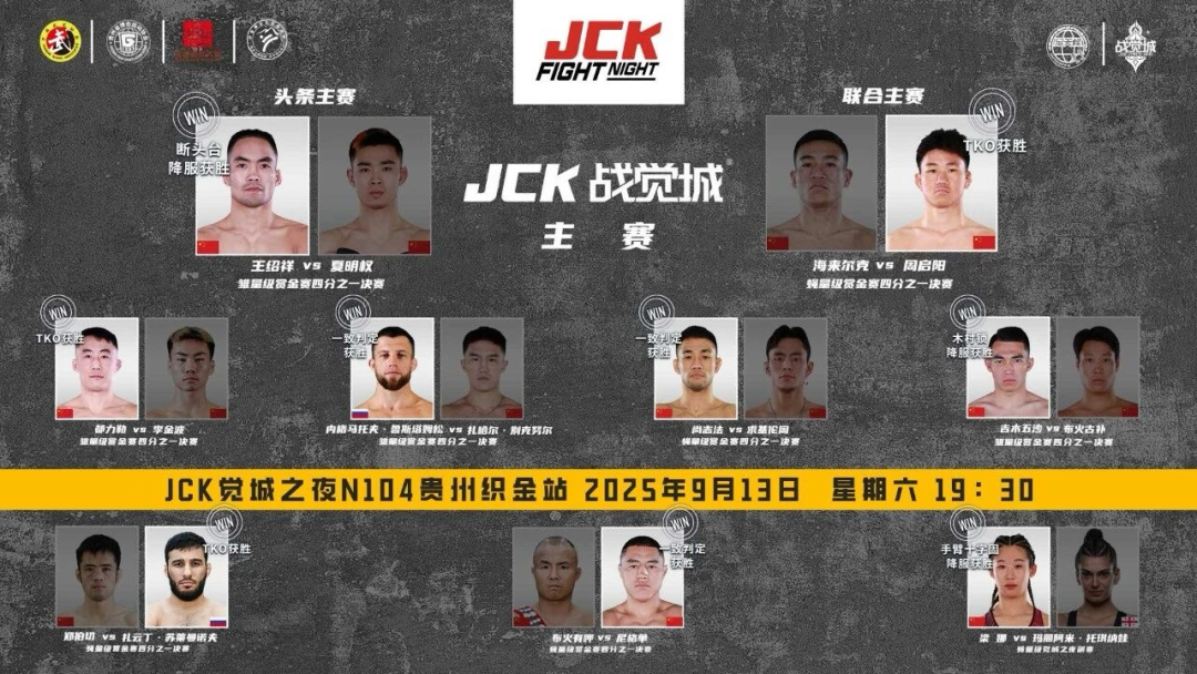 北京时间2025年9月13日,一年一度的“重磅大戏”百万赏金战拉开战幕。JCK觉城之夜N104再度重返贵州织金,当晚共上演了两个量级的巅峰对决,经过八场激战,蝇量级与雏量级赏金赛四强名单出炉。