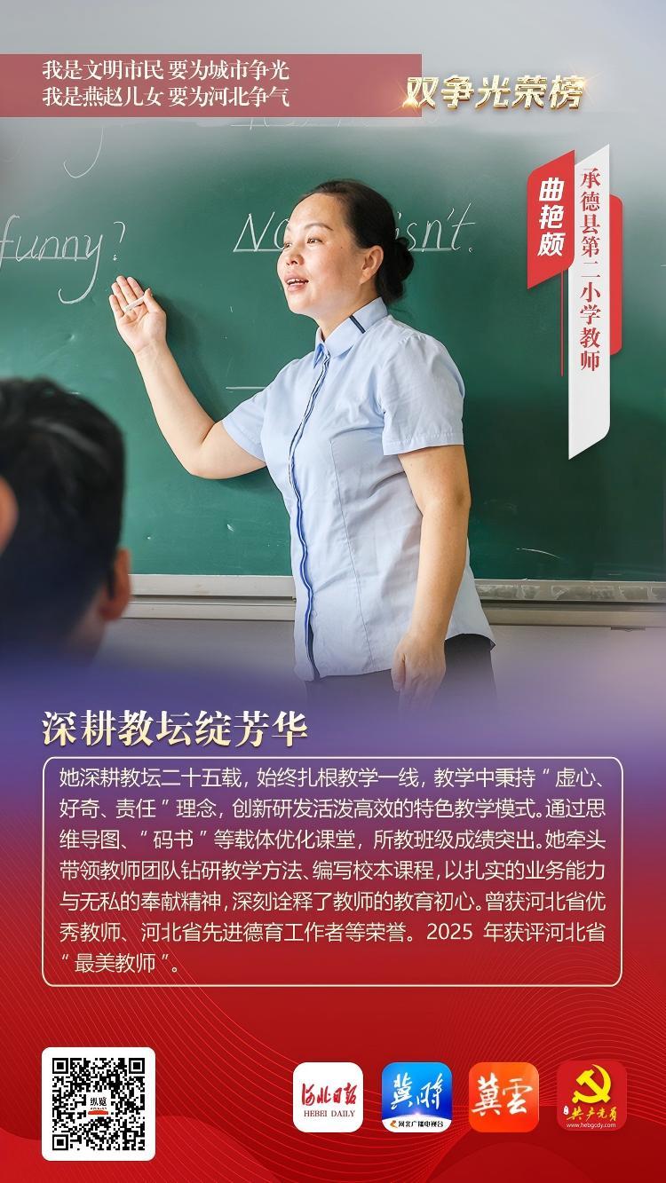 曲艳颇,中共党员,承德县第二小学教师。