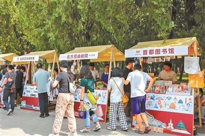 作为北京文化论坛会客厅的常态化活动,2025“我与地坛”北京书市展销近50万种出版物和文化产品。截至昨日,书市开幕三天吸引客流18万人次。其中,文创品集市展位引得许多市民驻足。