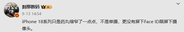 据CNMO了解,今年6月有消息称,苹果虽已尝试将部分Face ID组件移至屏幕下方,但技术尚未成熟到完全取消灵动岛的程度。iPhone 18 Pro系列仅会缩小灵动岛开孔面积,仍保留"药丸状"双挖孔设计,与当前iPhone 16系列形态基本一致。