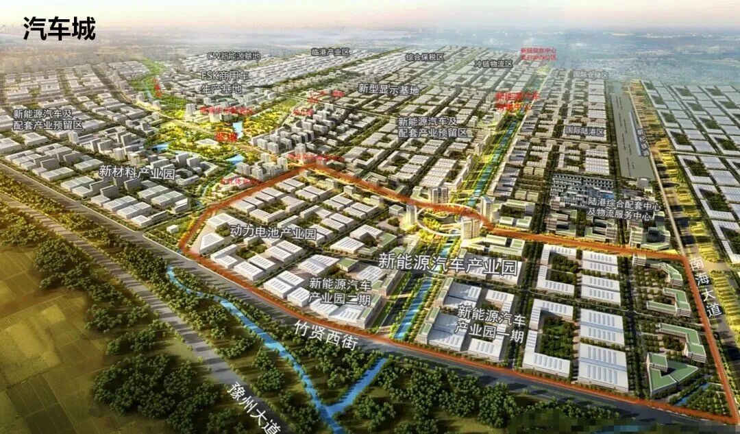 其中,一期用地4104亩,规划为年产能40万辆的整车生产线;二期用地3838亩,规划为年产能60万辆的整车生产线;三期用地2500亩,作为动力电池生产基地;四期用地3100亩,主要规划生产半导体。