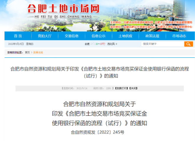 合肥:2022年允许房企以银行保函替代保证金,保证金比例降至20%。