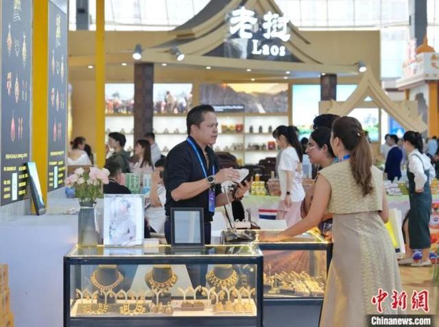 2025年5月9日,第二届湖南(怀化)RCEP经贸博览会在湖南怀化开幕。图为消费者在泰国展厅选购珠宝。 中新社记者 杨华峰 摄
