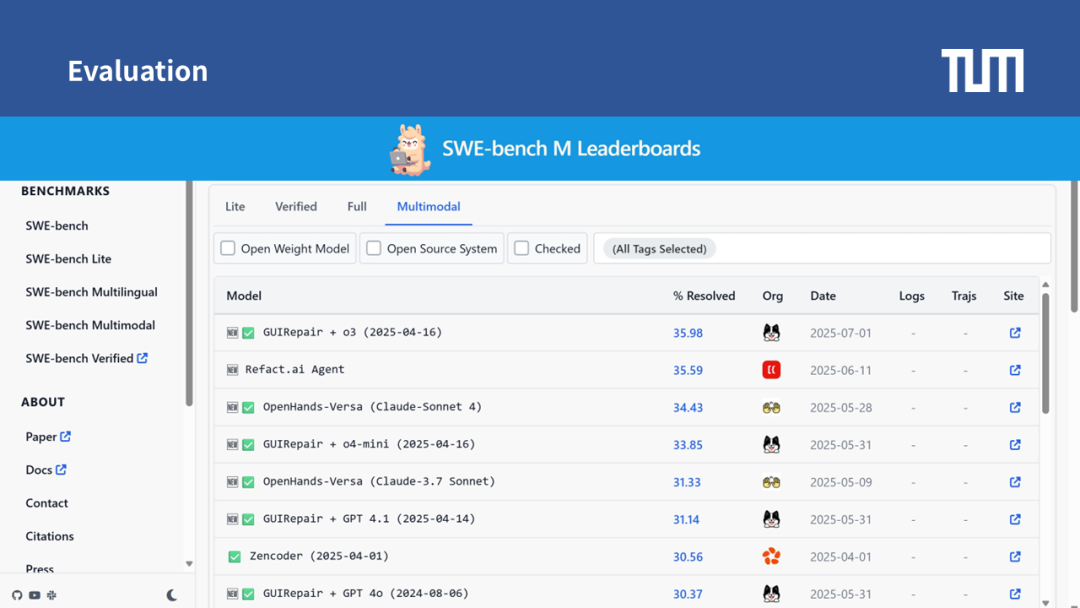 这也让 GUIRepair 成功登顶 SWE-bench Multimodal 排行榜第一!
