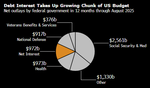 随着政府赤字膨胀,收益率全线走低将降低为不断增长的债务融资的成本。根据数据,截至9月9日,美国债务总额已达37.4万亿美元。最新预算案的通过延长了特朗普的减税政策,预计将使美国预算赤字维持在占国内生产总值6%以上的高位。