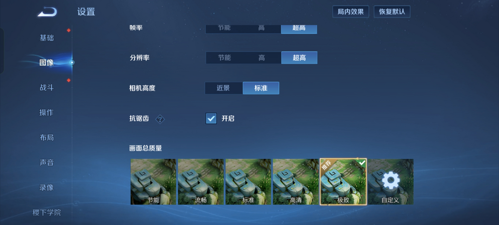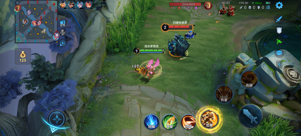 在王者荣耀中把帧率调到极高、分辨率超高、画面总质量极致的情况下进行游戏,一整局下来画面十分稳定,我选的钟无艳,虽然没太高的操作空间,但每次开团的时候,我都能很顺畅的控制对方,丝毫没有卡顿,稳定在90帧左右。