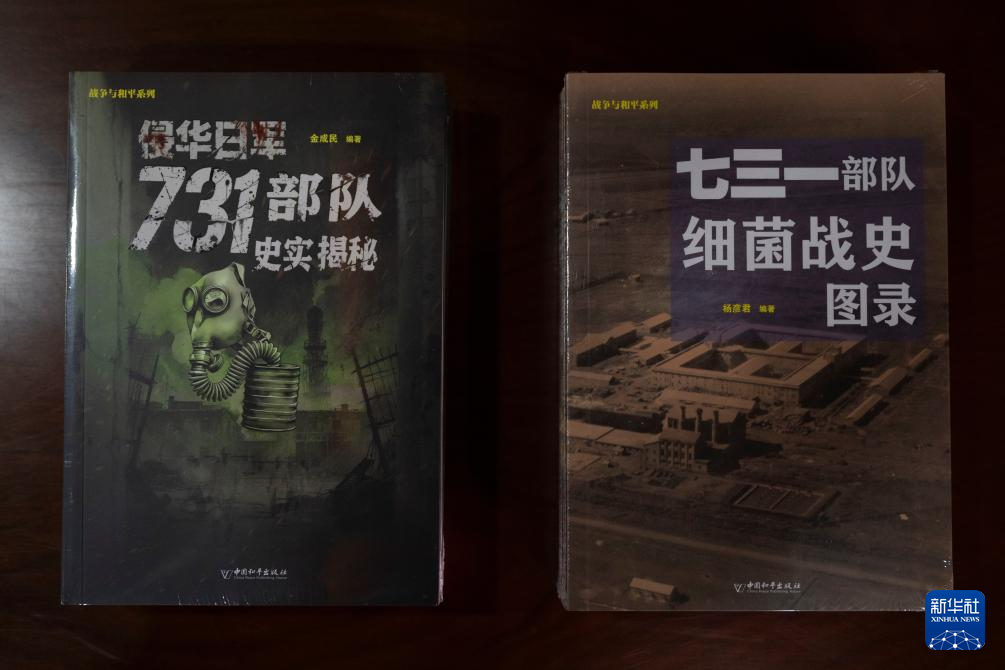 这是9月17日在新书出版首发仪式现场拍摄的《侵华日军731部队史实揭秘》和《七三一部队细菌战史图录》。