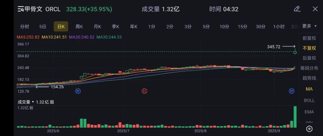 四十多年前,埃里森和伙伴们创立了甲骨文,把一个不起眼的数据库软件公司慢慢做成了全球科技巨头。几十年过去,他始终握着核心股份——截至目前,占股41%。股价一涨,他的财富自然跟着上去。周二尾盘时,埃里森的净资产已达到约 2940 亿美元;进入盘后交易,甲骨文股价继续走高,他的身家一夜之间再增约 700 亿美元。到了周三盘中,甲骨文股价进一步上涨,埃里森的净资产随之又增加 1110亿美元,成功登顶全球首富。