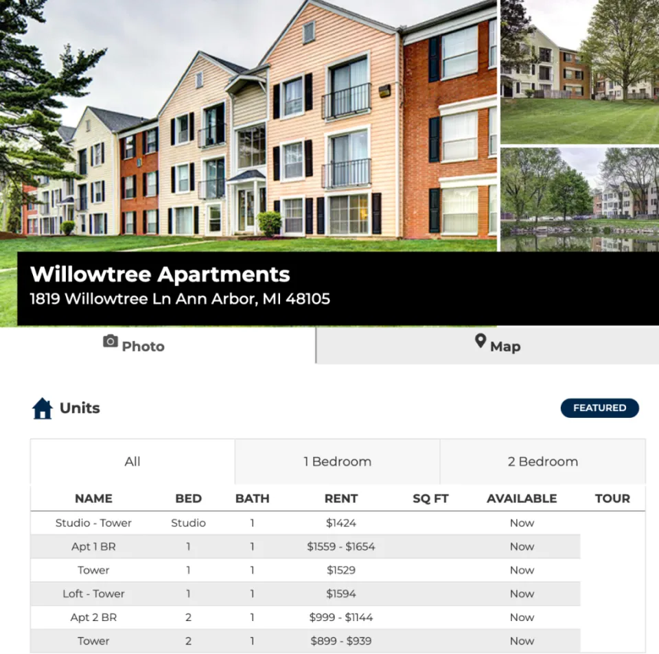 ▲Willowtree公寓的外观和租金价位/来源:百度