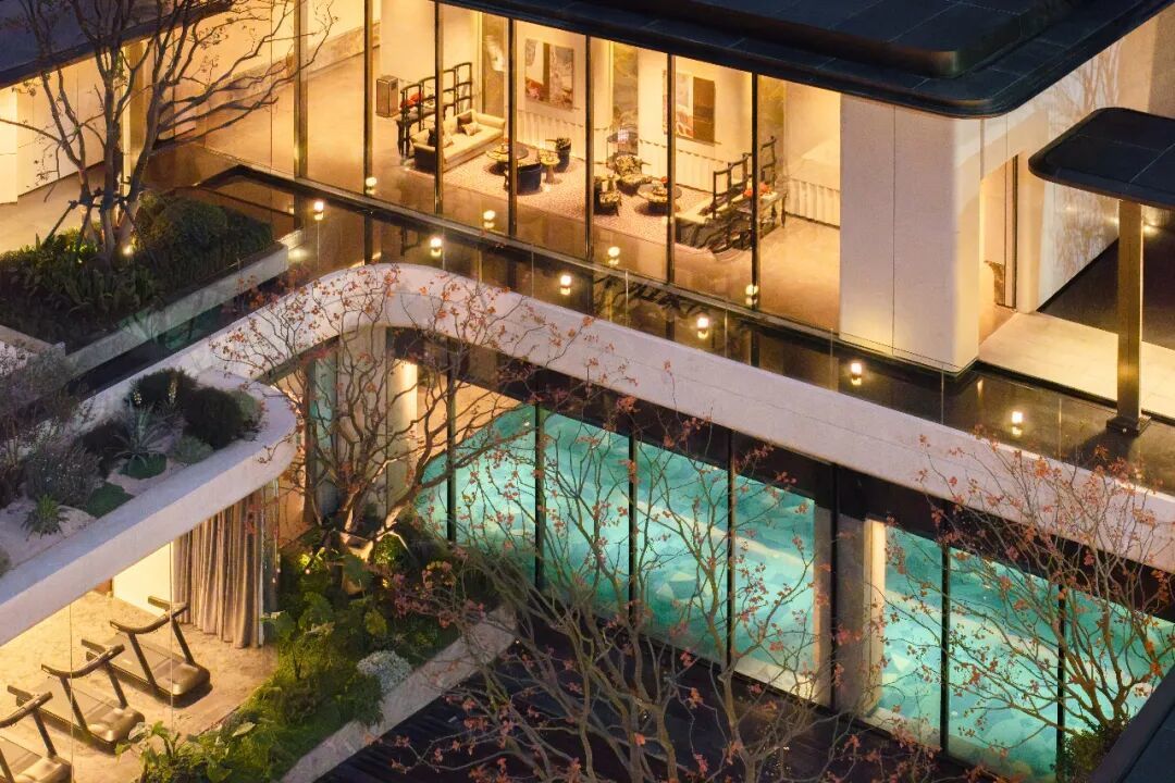 金陵序考虑平面与立体的相融,领创垂直会所体系,把室内生活、庭院交往、会所功能相互交织,使景观融入建筑,通过空间分层+场景定制激活业主社交价值,形成从私密到开放的圈层闭环,在这里,会所不仅是身份认同的符号,更强化业主情感连接、价值共鸣,最终形成“高端居住-资源交互-文化输出”的闭环生态。