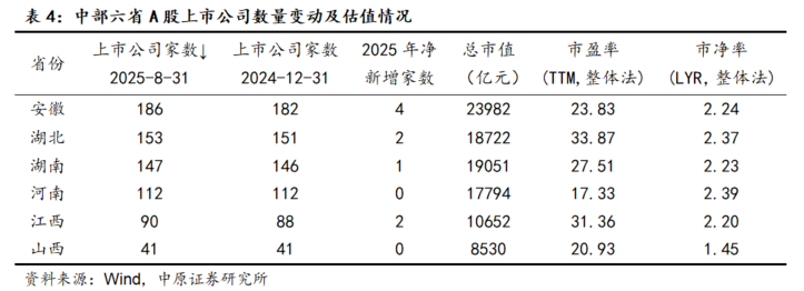 上市公司情况:8月份,全国A股上市公司净增8家,其中江苏净增3家,浙江、上海分别净增2家,辽宁净增1家。截至8月末,河南共有A、H上市公司138家,A股112家、H股31家,全国31个省份中排名维持在第12位和第9位不变;河南省A股总市值17794.34亿元,环比增长13.34%,规模排名维持居全国第13位,居中部六省第4位。