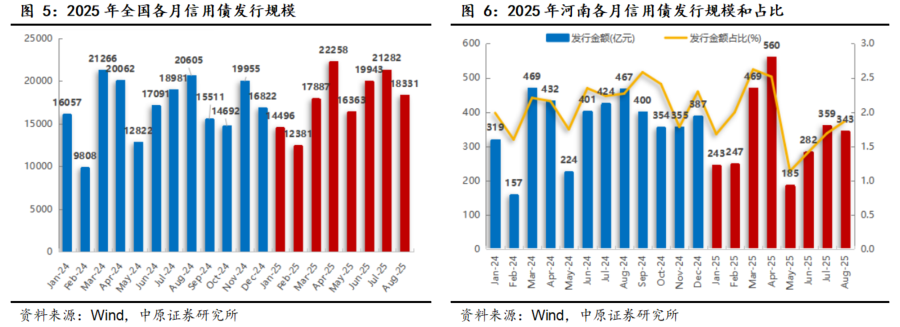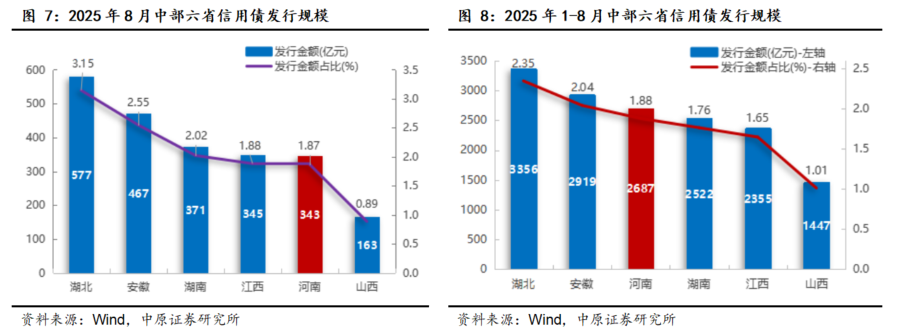 8月份,河南信用债券融资规模环比回落。Wind数据显示,8月份,河南省发行信用债发行60只,融资规模342.68亿元,环比下降4.59%;前8个月,累计发行457只信用债,融资规模2687.49亿元,同比下降7.12%,全国排名较前7个月下降1位至第14位,中部六省第3位。