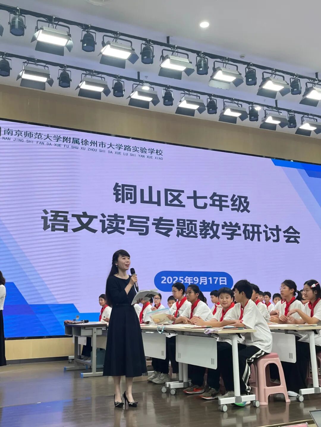 为深化新课标理念,落实本学期语文教学核心任务,全面提升七年级读写教学质量,促进区域教学经验共享与专业成长。9月17日,徐州市铜山区教师发展中心在徐州市大学路实验学校(南校区)举办七年级语文读写专题教学研讨会。这不仅仅是一次教学共识的会议,更是一场指向课堂实战、破解教学难题的智慧盛宴。