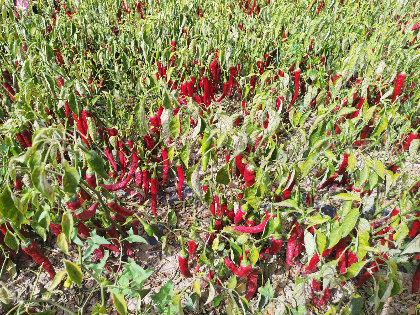 走进辣椒种植基地,一串串色泽鲜亮的辣椒挂满枝头,长势喜人,村民们抢抓农时穿梭田垄,熟练地采摘、分拣,再快速打包、称重、装车,动作行云流水,田间地头处处涌动着喜悦与忙碌。