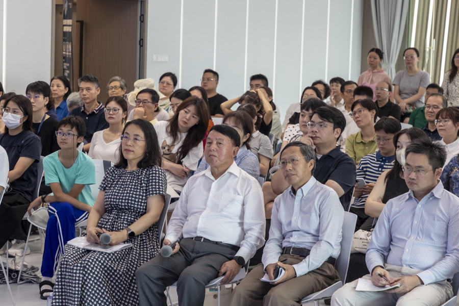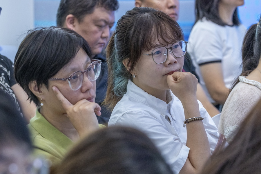中职教师熊明秋(左)和小学历史老师李晓芸(右)聆听中认真思索。