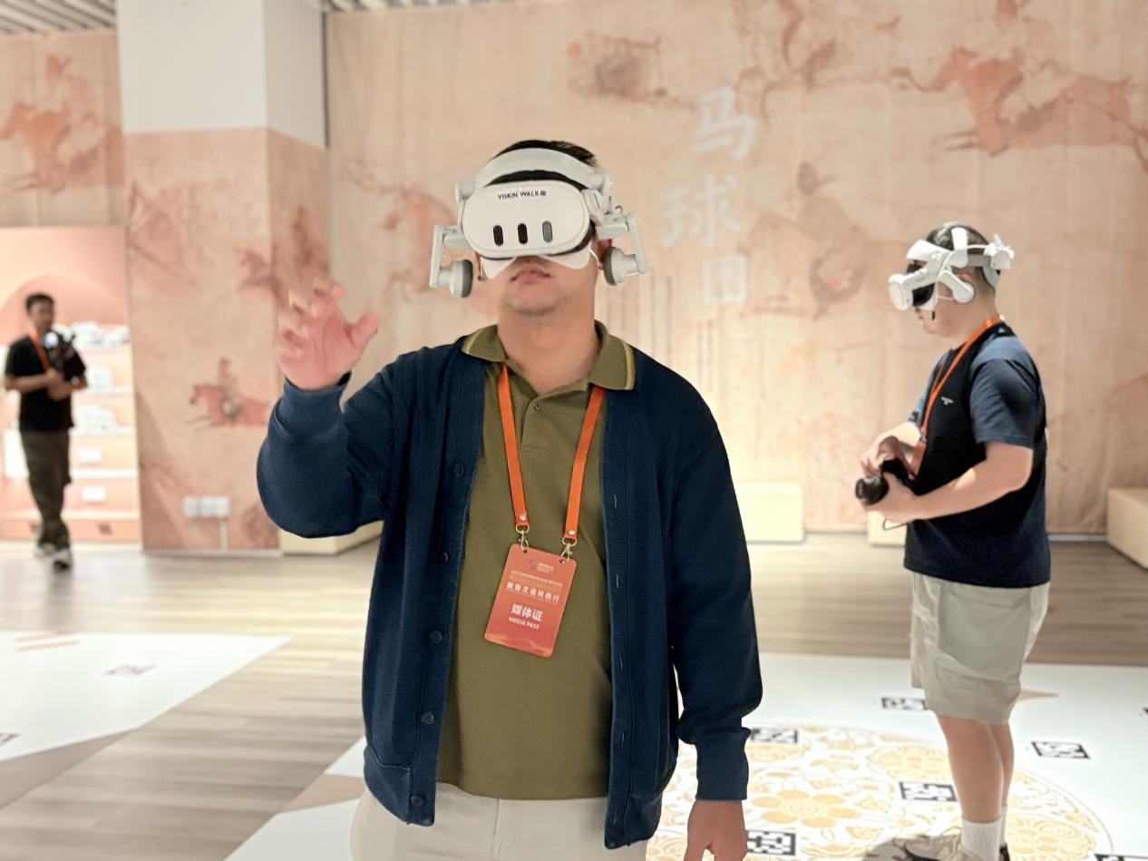 而陕西历史博物馆秦汉馆的《壁画那边是唐朝》VR大空间沉浸式数字体验项目,则将“跨时空对话”变为现实。游客戴上VR设备,瞬间就能“穿越”到唐代壁画场景中——身旁仕女手持团扇缓步走过,衣袂飘飘;远处乐师奏响琵琶,旋律悠扬;甚至能伸手“触碰”壁画中的器物,感受唐代工艺的细腻。“像真的走进了壁画里,能近距离看唐代人的生活,这种体验太神奇了。”俄罗斯网红博主的感叹,正是数字技术“活化”历史的生动写照。