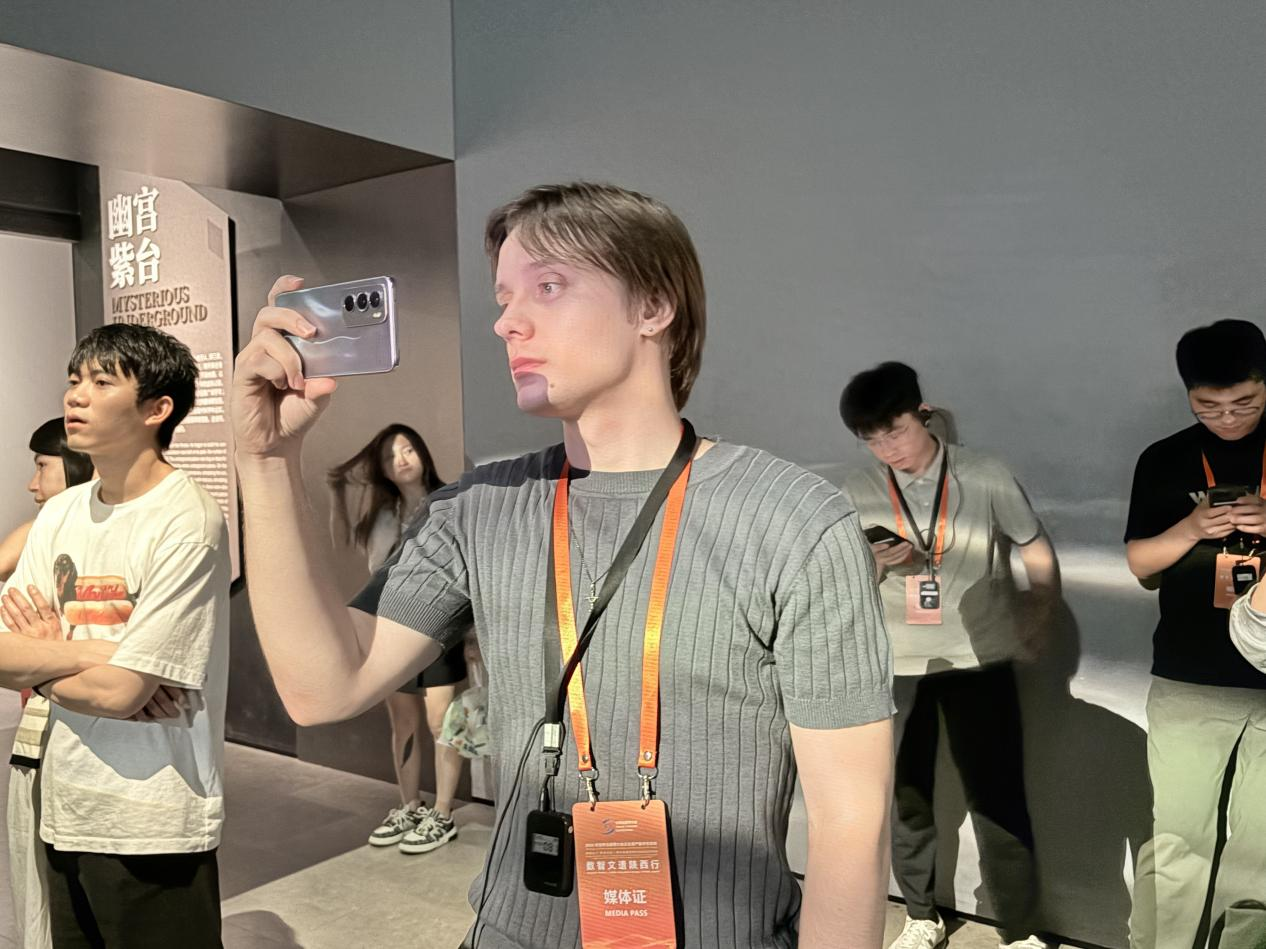 波兰网红博主在秦始皇帝陵博物院拍摄记录数字展厅画面
